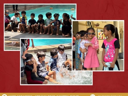 The entire Pre-Primary section enthusiastically participated in the pool party, accompanied by 5 teachers, 2 supporting staff members, and trained swimming coaches, ensuring safety and supervision throughout the event.