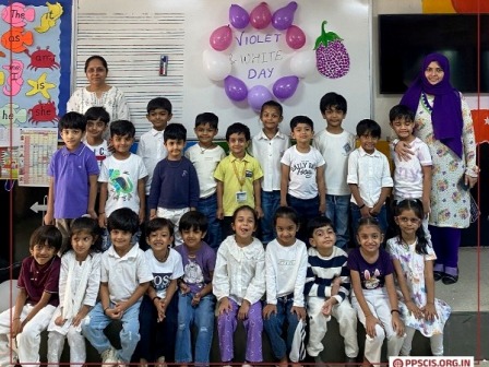 The Pre-Primary section of PP Savani Cambridge International School celebrated Violet and White Day with great enthusiasm and joy. The entire atmosphere of the classroom was filled with shades of violet and white as both students and teachers came dressed beautifully in the theme colours.